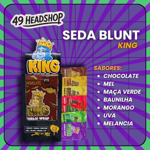A Seda Blunt King é a escolha perfeita para quem busca uma experiência única e saborosa na hora de relaxar. Disponível em uma variedade de sabores irresistíveis como Chocolate, Mel, Maçã Verde, Baunilha, Morango, Uva e Melancia, essas sedas proporcionam um toque especial à sua fumada, tornando cada momento ainda mais prazeroso.